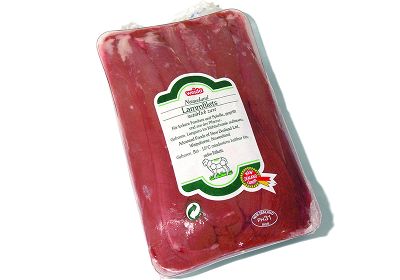 Gleichmäßig starke Scheiben aus der knochenlosen Lammkeule bratfertig im 2er-Pack eingefroren.