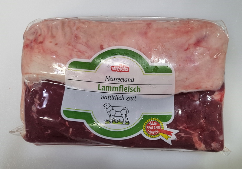 aus Neuseeland-Vorderviertel geschnitten. Herzhaft und saftig, ohne Hals, ohne Brustspitze und ohne Vorderhaxe mit rechteckigem Zuschnitt(square cut), zwischen fünfter und sechster Rippe von der Karkasse abgetrennt im Vakuumbeutel verpackt.